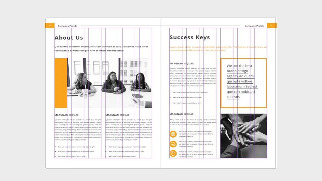 打格是排版的基础,画册排版前,需要先规划好版面的模块,确保排版的严谨和内容的完整