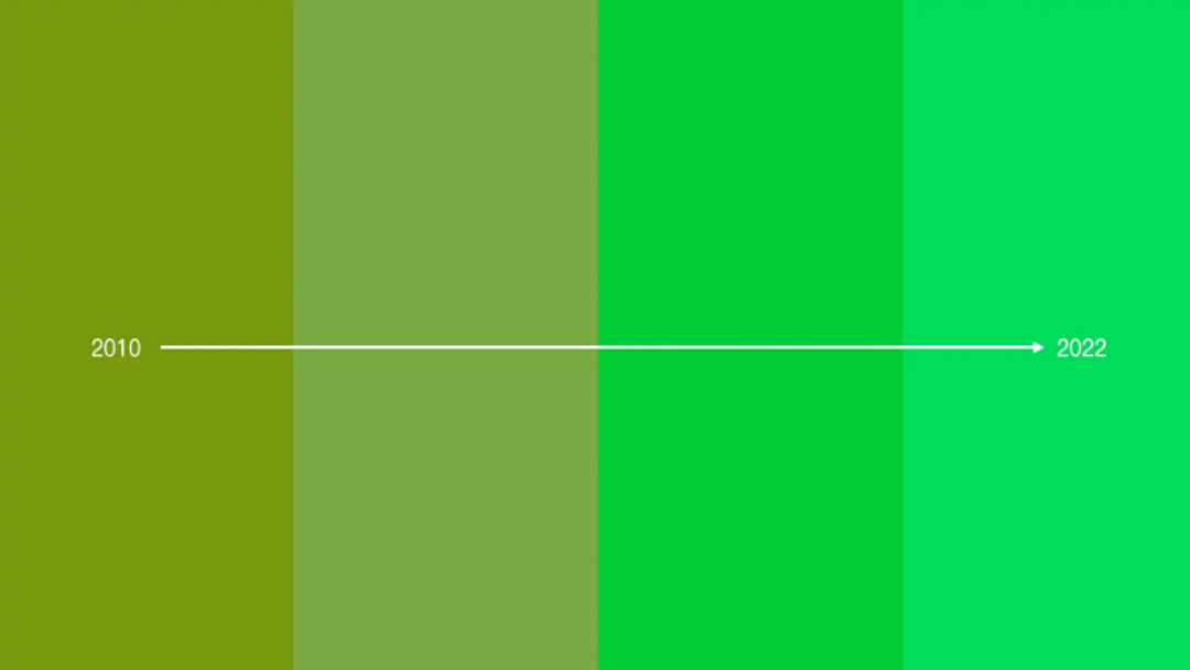 新logo设计不仅布局变了,logo设计中颜色也变了。在原来的基础上绿色变得更明亮