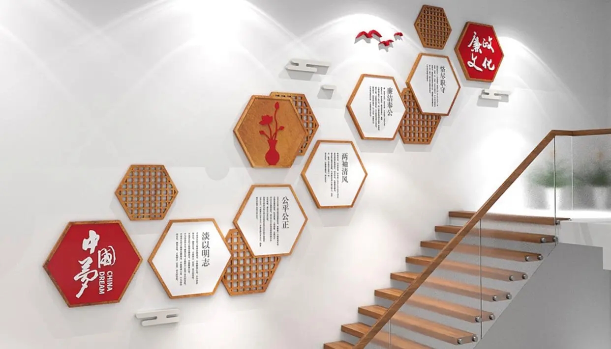 党建文化墙是党员活动、交流、学习的平台,楼梯文化墙的设计可以引导全民领悟党政文化精髓和精神品质。