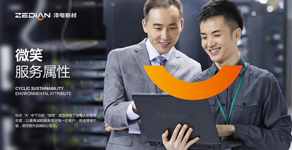 标志“A”中下方的“微笑”造型体现了泽电人的服务态度,以最真诚的服务面对每一位客户,传递情绪价值,进而提升品牌的公信力。