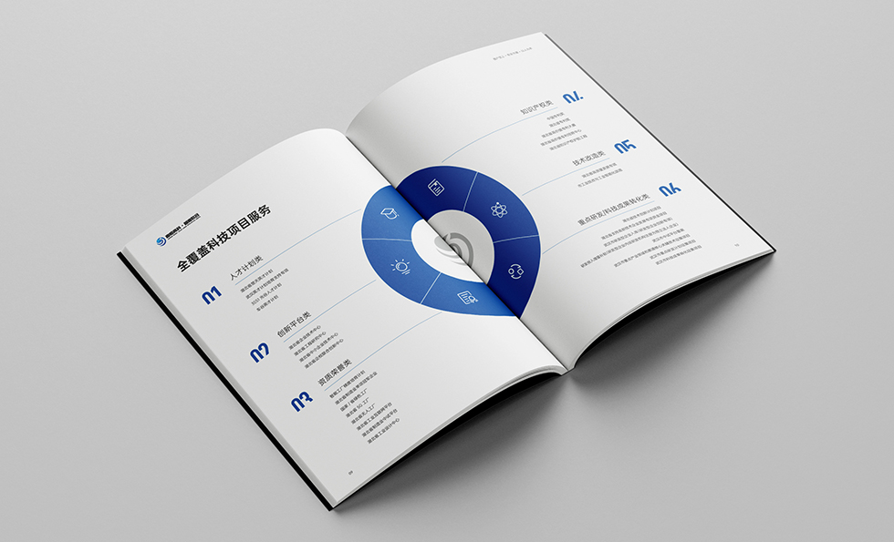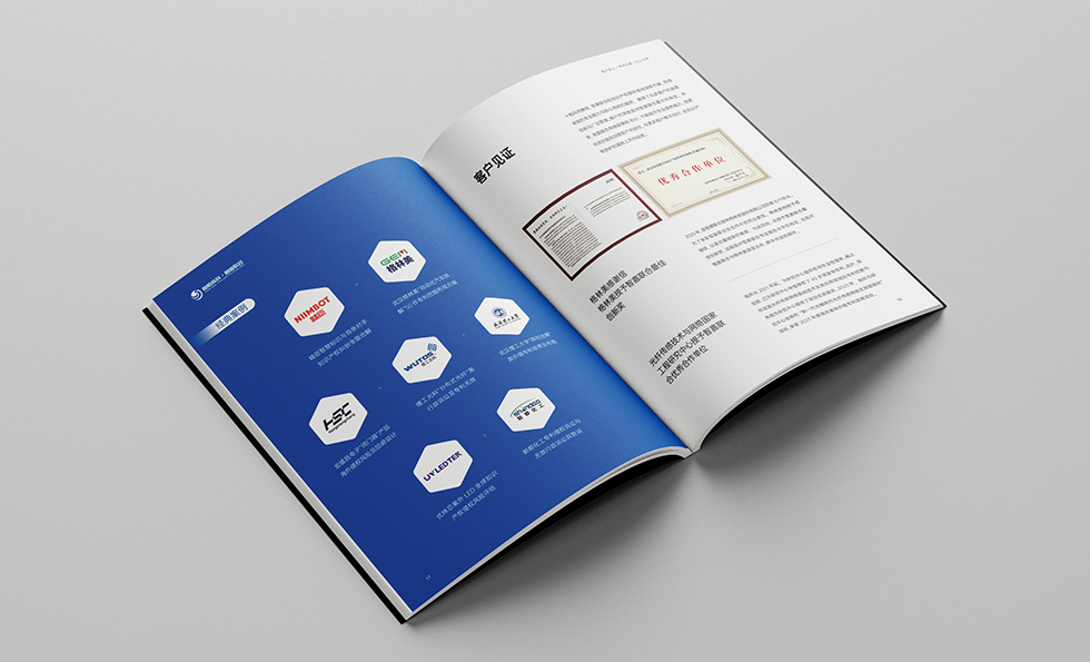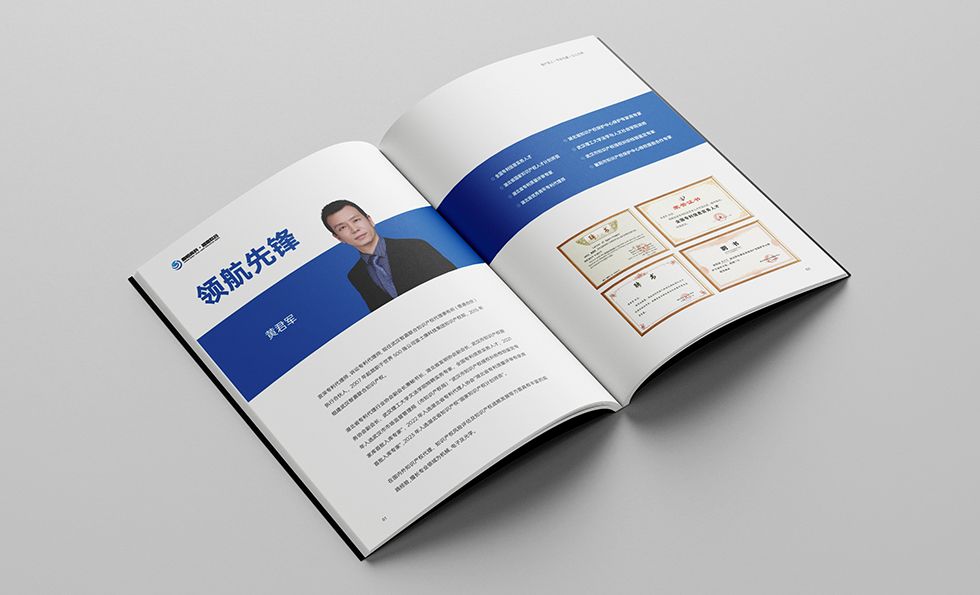 艾的尔设计承接画册设计项目。在画册设计创意的过程中,设计师通过对行业属性进行深入地了解,在封面设计中,边框留白,使logo背景图更加聚焦,让画面整个留有呼吸的空间,内页的颜色也以白色和科技蓝为主,整体给人大气、智慧的印象。整个画册传达出了理性、专业的视觉形象。