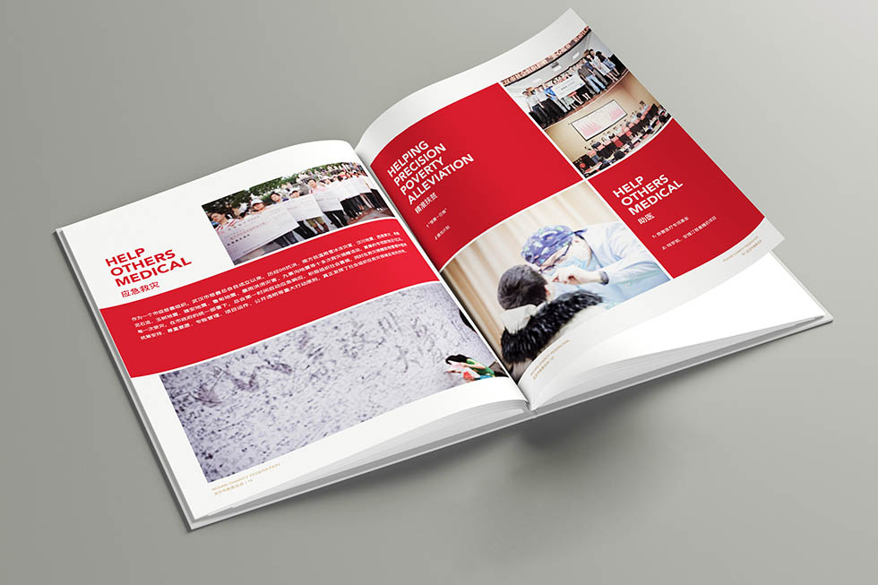 项目背景:武汉市慈善总会原名社会福利慈善会,成立于1993年9月,是武汉市行政区域内依法登记注册,接受社会各界自愿捐赠的非营利性、公益性社会团体(1998年更名为武汉市慈善会,2008年4月更名为武汉市慈善总会 )。现有理事成员130个。总会秘书处设有办公室、筹募部、项目部三个部门。武汉市的慈善事业坚持以“安老、扶幼、助学、济困”为宗旨,在市委、市政府的关怀和社会各界的大力支持下,积极开展了慈善捐赠和社会救助,截止目前,共接收各类捐款(物)近3亿元,使用2亿多元,救助近40余万人次。艾的尔承接其画册设计制作,成立品牌设计小组,与企业进行深入沟通,明确企业对于画册设计的需求,封面以红色为主,代表积极乐观而热情,慈善,真诚主动。