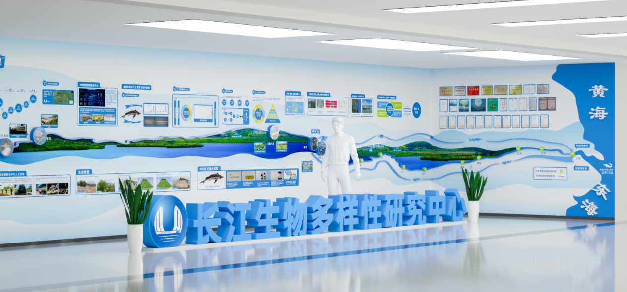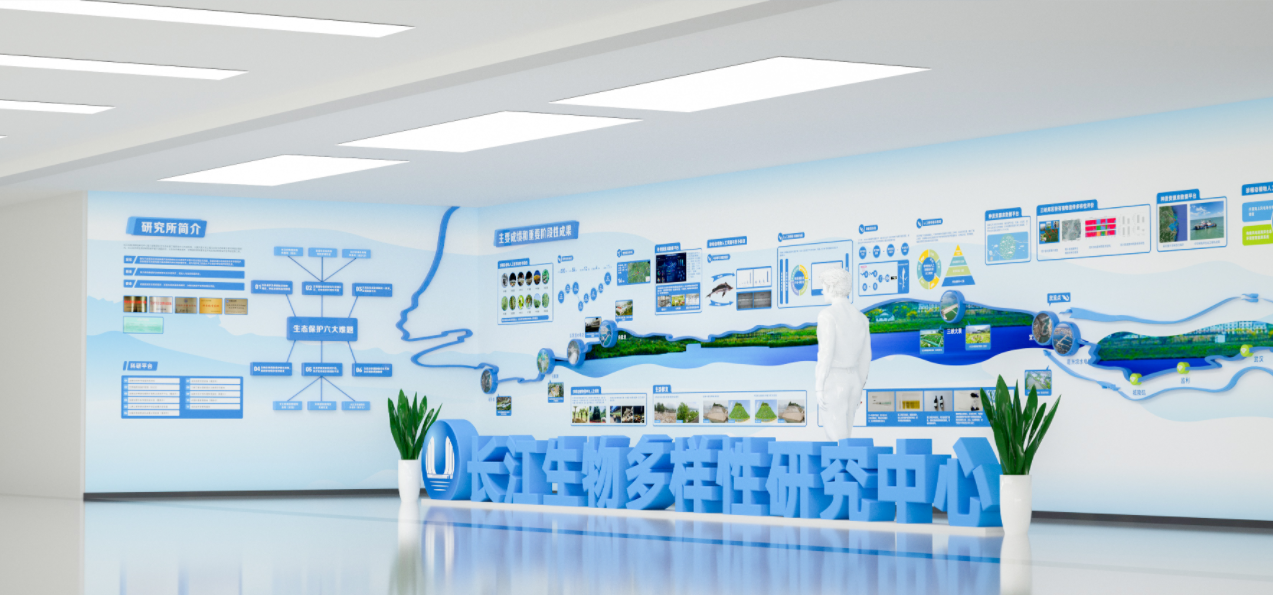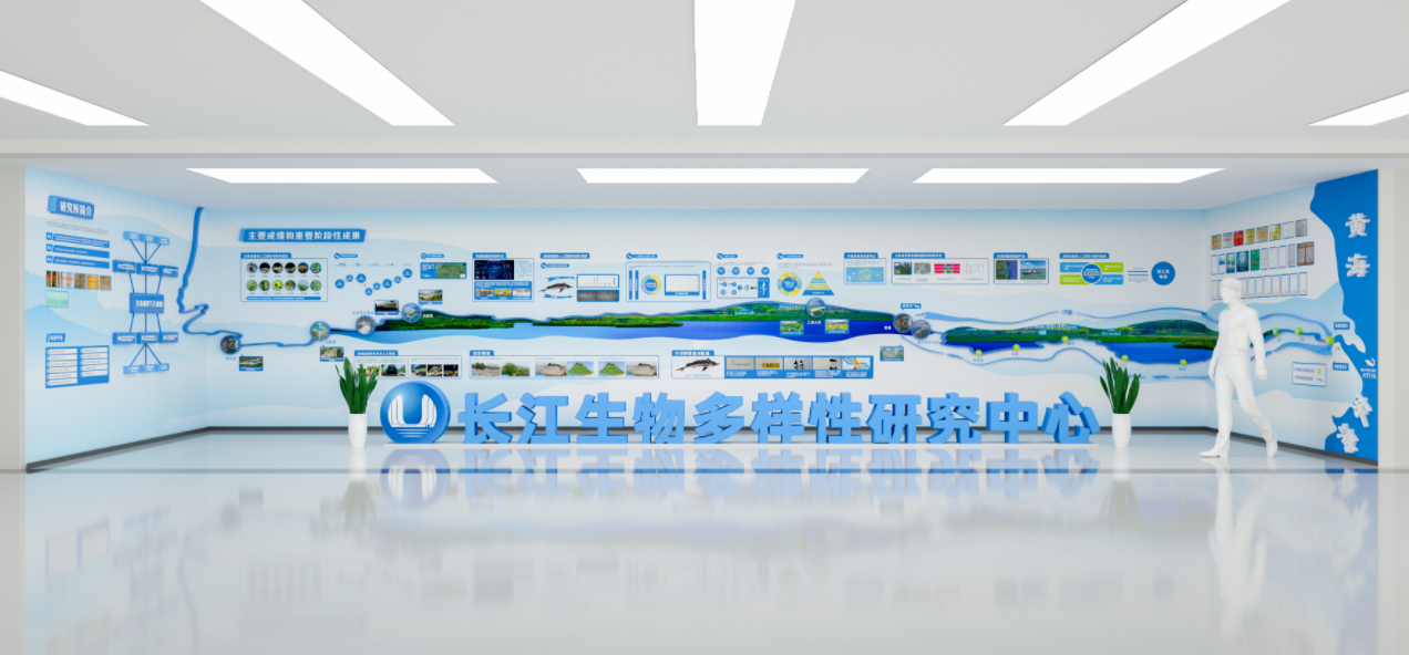 项目背景:长江生物多样性研究中心是三峡集团长江生态环境工程研究中心内设机构,主要负责水利工程与水生生态环境协调可持续发展研究、长江经济带生物多样性保护重大课题研究,以及生态修复技术、珍稀濒危物种繁育技术和生物多样性保护技术研发等工作。艾的尔品牌设计承接其文化墙设计,与客户深入沟通后,决定整体形式以长江流实际流向为主轴,展示生物多样性中心基地分布、重要科研和技术成果等,受到客户的一致好评。