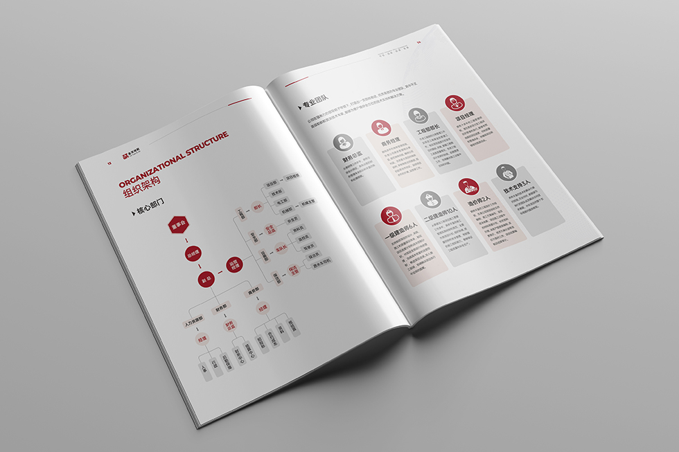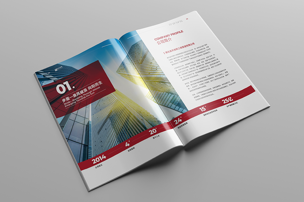 项目背景:湖北金天地和工程管理有限公司成立于2014年,是一家专业为客户提供工程施工解决方案的企业。公司经济实力雄厚,专业技术能力强,设备先进,管理完善,施工经验丰富。艾的尔设计通过与企业进行深入沟通,明确企业对于画册设计的需求,画册封面内容简洁并突出重点,,主色调采用红白搭配,对比强烈,容易吸引注意力。版面图文并茂,图片与文字相辅相成,均衡、合理,生动活泼的色彩搭配与丰富的细节,给人以饱满的视觉印象。